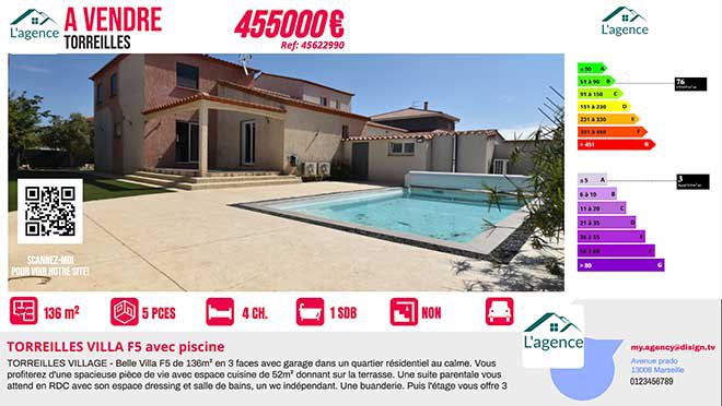 L'application DISIGN IMMO vous permet de vous adapter à tous les écrans. Elle vous permet de diffuser tous vos mandats et autres messages promotionnels. Vos mandats sont synchronisés et animés automatiquement, animant ainsi votre vitrine en continu.